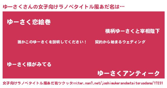 | 胡散臭い通販商品みたいなあだ名 | 『億万長者になれる霊験あらたかなお札…その名も「ゆーさく」』 |