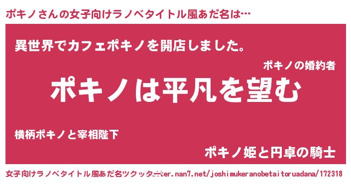 | 男性向けラノベタイトル風あだ名 | 『ダンジョンにポキノを求めるのは間違っているだろうか』 |