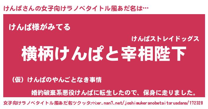 | 意味不明あだ名 | 『とにかく怪しいけんぱ』『自称けんぱ』 |