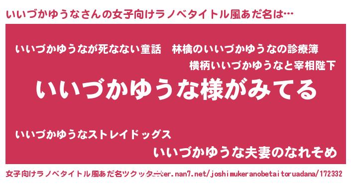 | 男性向けラノベタイトル風あだ名 | 『いいづかゆうなの嫁は女の子じゃないと思った?』 |