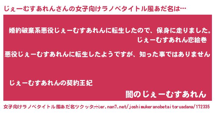 | 男性向けラノベタイトル風あだ名 | 『この素晴らしい世界にじぇーむすあれんを!』 |