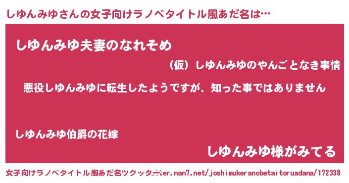 | 男性向けラノベタイトル風あだ名 | 『この素晴らしい世界にしゆんみゆを!』 |