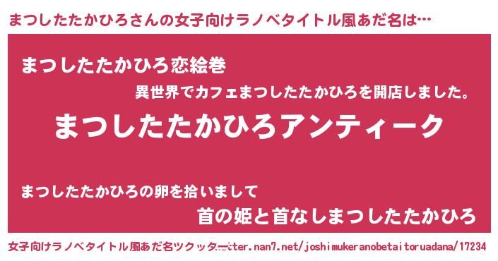 | 意味不明あだ名 | 『自称まつしたたかひろ』 |