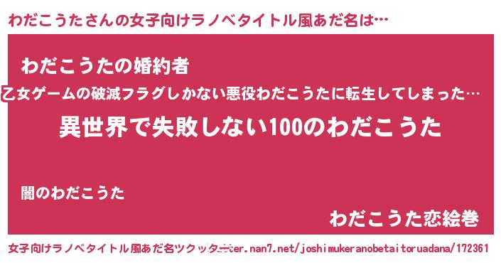| 意味不明あだ名 | 『永久保存わだこうた』『自称わだこうた』 |