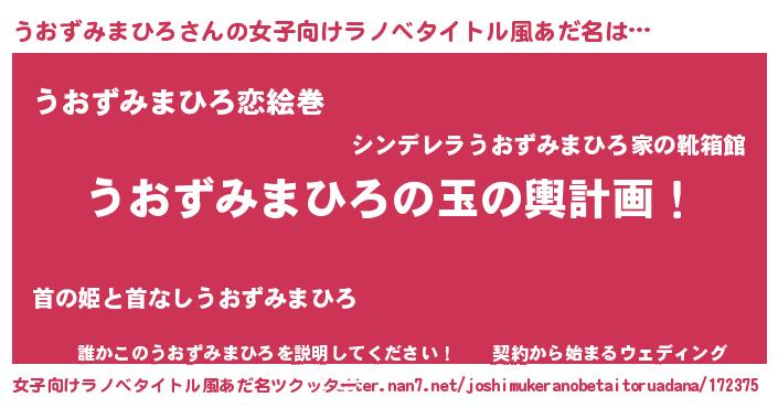 | 男性向けラノベタイトル風あだ名 | 『うおずみまひろ~年齢イコール彼女いない歴の魔法使い~』 |