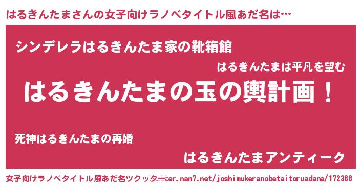 | 胡散臭い通販商品みたいなあだ名 | 『芸能人もオススメする高麗人参…その名も「はるきんたま」』 |