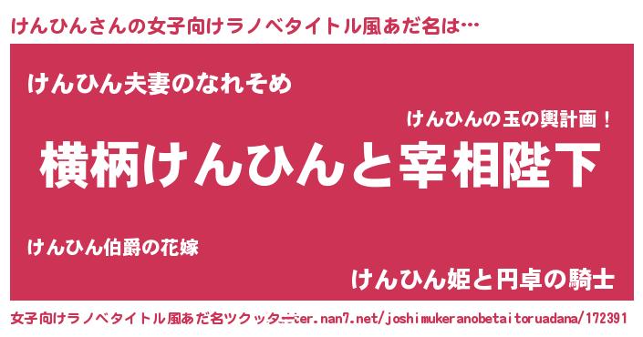 | 男性向けラノベタイトル風あだ名 | 『けんひんに滅ぼされるだけの簡単なお仕事です』 |