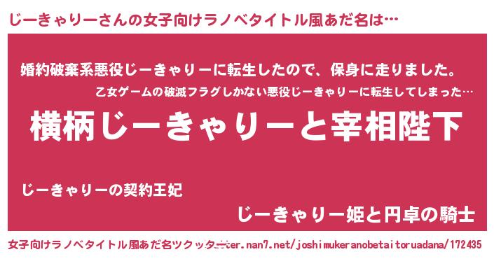 | 胡散臭い通販商品みたいなあだ名 | 『億万長者になれる霊験あらたかなお札…その名も「じーきゃりー」』 |