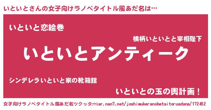 | 恥ずかしいあだ名 | 『イトイトデラックス』『イトリンリン』 |