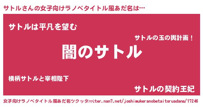 | 意味不明あだ名 | 『自称サトル』『とにかく怪しいサトル』 |