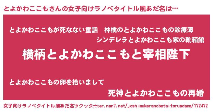 | 男性向けラノベタイトル風あだ名 | 『とよかわここもに滅ぼされるだけの簡単なお仕事です』 |