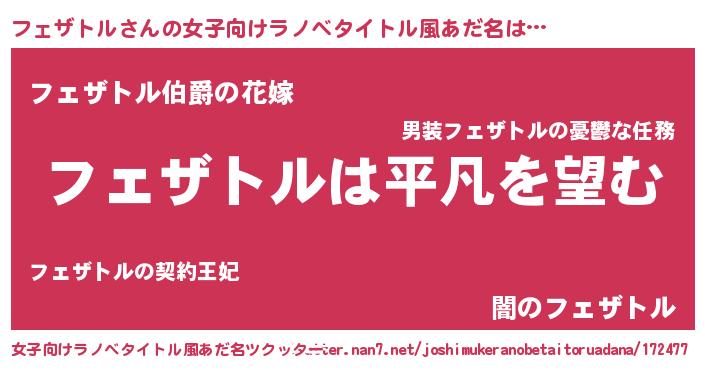 | 男性向けラノベタイトル風あだ名 | 『ダンジョンにフェザトルを求めるのは間違っているだろうか』 |