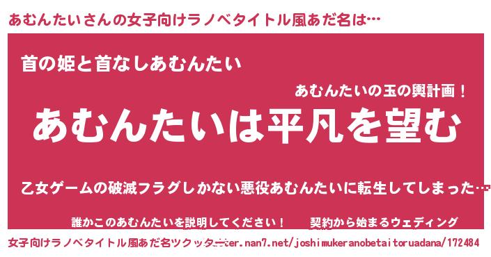 | 胡散臭い通販商品みたいなあだ名 | 『信頼と実績のペンダント…その名も「あむんたい」』 |