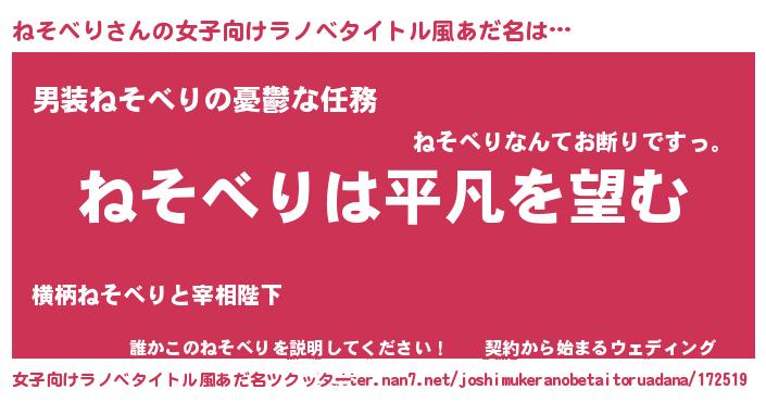 ねそべりさんの女子向けラノベタイトル風あだ名