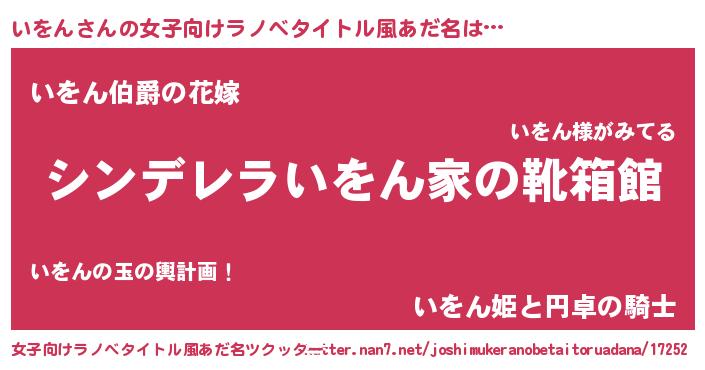 | 男性向けラノベタイトル風あだ名 | 『緋弾のイヲン』『いをんの憂鬱』 |
