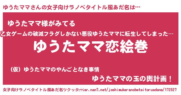 | ヒーロー風カッコイイあだ名 | 『慈愛の使者ゆうたママ』『幻影騎士ユウ』 |