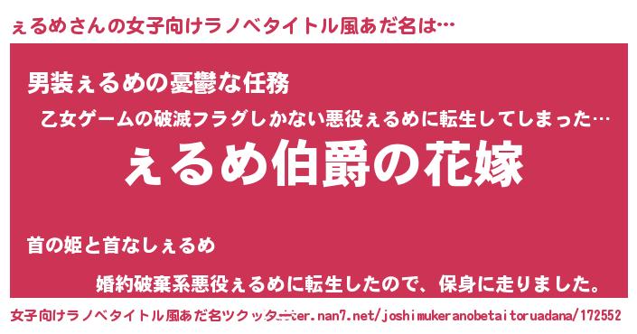 | 胡散臭い通販商品みたいなあだ名 | 『世界が平和になる高級そうな絵画…その名も「ぇるめ」』 |