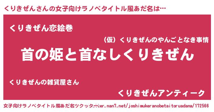 | 男性向けラノベタイトル風あだ名 | 『はたらくくりきぜんさま!』 |