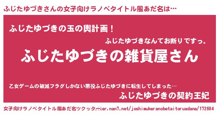 | 男性向けラノベタイトル風あだ名 | 『やはりふじたゆづきの青春ラブコメはまちがっている 』 |