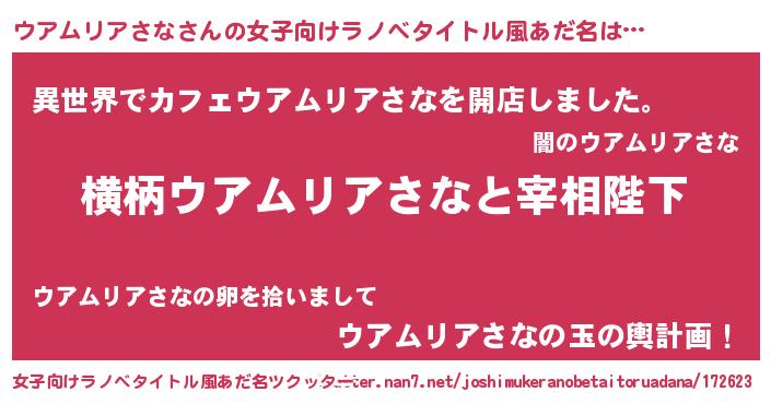 | 男性向けラノベタイトル風あだ名 | 『ウアムリアさなに滅ぼされるだけの簡単なお仕事です』 |