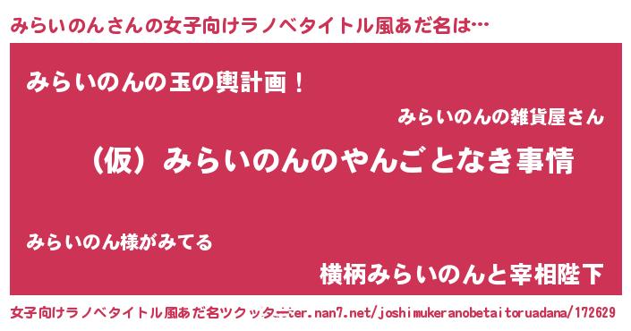 | 男性向けラノベタイトル風あだ名 | 『みらいのんの憂鬱』 |