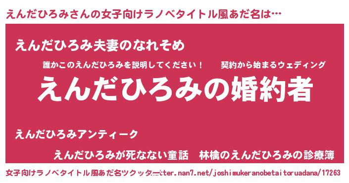 ファンタジー風あだ名 | 『エターナルエンダヒロミー』 |