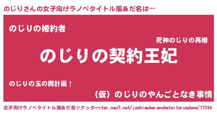 | 男性向けラノベタイトル風あだ名 | 『誰もが恐れるあののじりが、ぼくの専属メイドになるようです。』 |