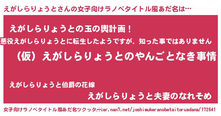 | 男性向けラノベタイトル風あだ名 | 『えがしらりょうとの憂鬱』 |