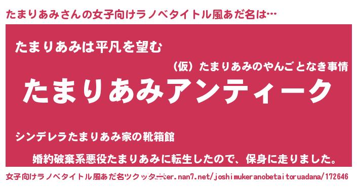 | 意味不明あだ名 | 『自称たまりあみ』『ペロリンたまりあみ』 |
