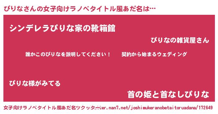 | 男性向けラノベタイトル風あだ名 | 『ピリナアートオンライン』 |
