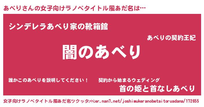 | 男性向けラノベタイトル風あだ名 | 『Re:あべりから始める異世界生活』 |