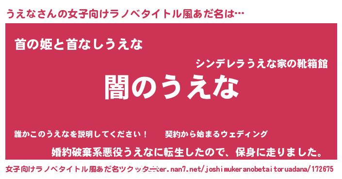 | 欧米人風あだ名 | 『ケンブリッジうえな』『マイケルうえな』 |