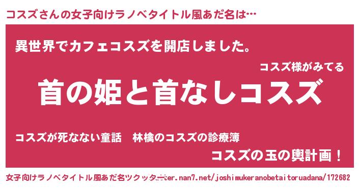 | 胡散臭い通販商品みたいなあだ名 | 『絶対に幸福をもたらす水素水…その名も「コスズ」』 |