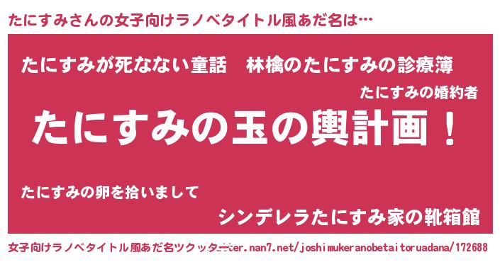 | 胡散臭い通販商品みたいなあだ名 | 『あなたにだけ特別に提供する100年もののヴィンテージワイン…その名も「たにすみ」』 |