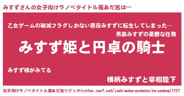 | 男性向けラノベタイトル風あだ名 | 『みすずの憂鬱』『魔弾の王とみすず』 |