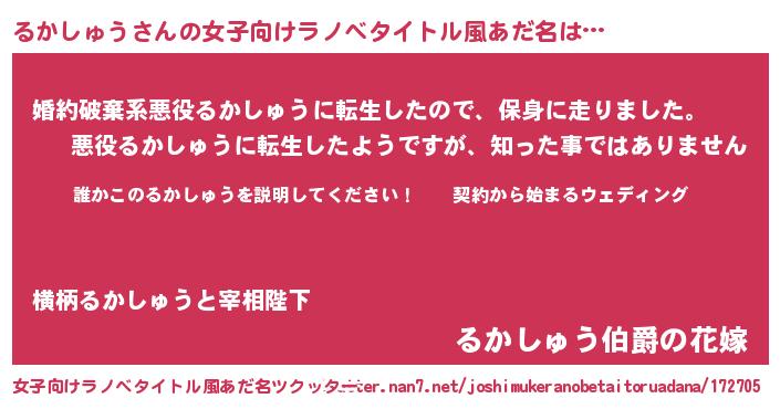 | 男性向けラノベタイトル風あだ名 | 『ルカシュウアートオンライン』 |