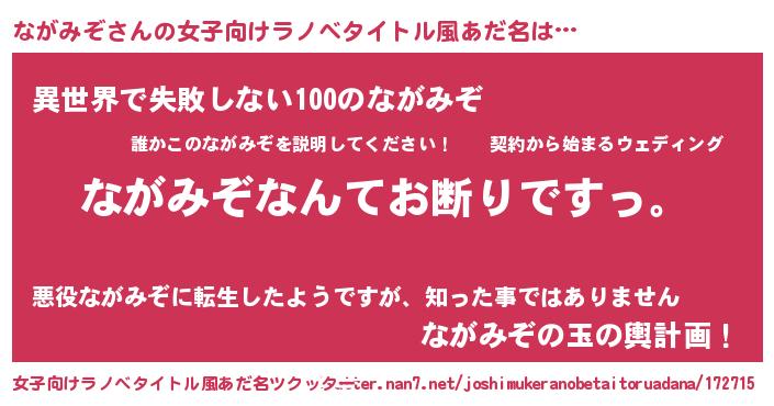 | 男性向けラノベタイトル風あだ名 | 『魔法科高校のながみぞ』 |