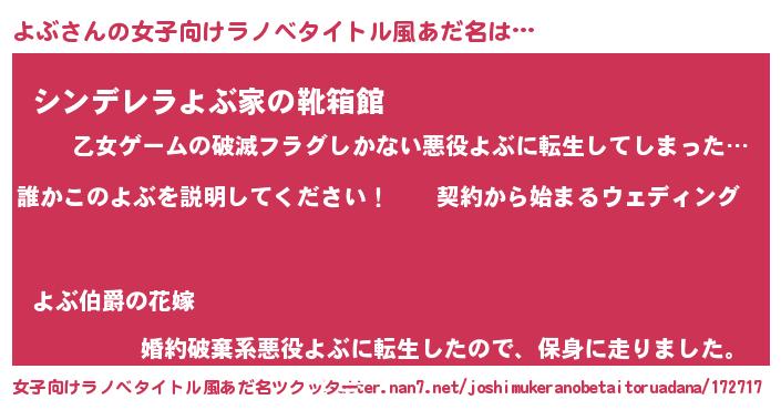 | 男性向けラノベタイトル風あだ名 | 『ヨブアートオンライン』『緋弾のヨブ』 |