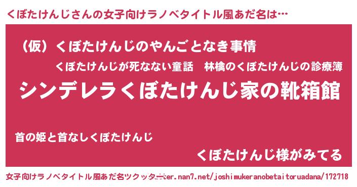 | ヒーロー風カッコイイあだ名 | 『スーパークボタケンジ』『暗黒騎士クボ』 |