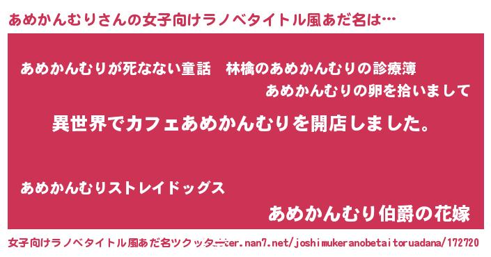 | 意味不明あだ名 | 『永久保存あめかんむり』 |