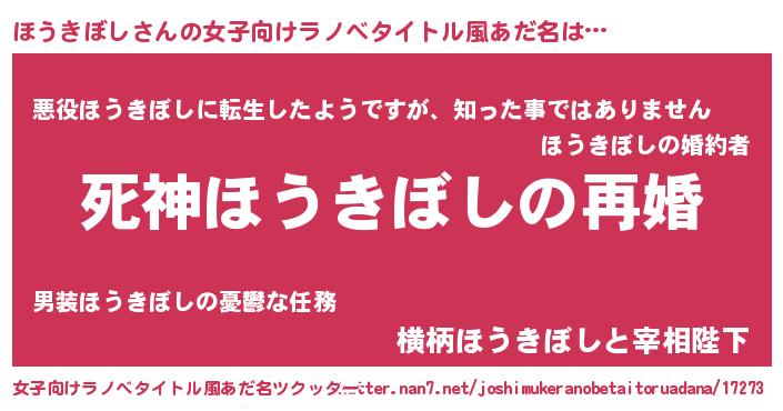 | 男性向けラノベタイトル風あだ名 | 『ノーゲーム・ノーホウキボシ』 |