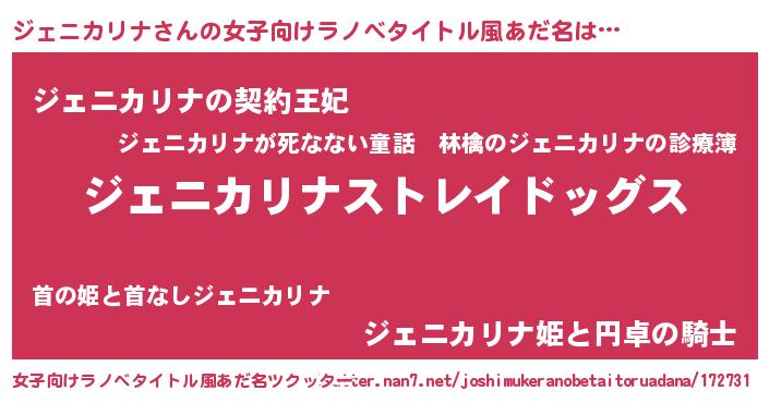| 欧米人風あだ名 | 『ケンブリッジジェニカリナ』 |
