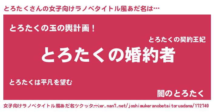 | ファンタジー風あだ名 | 『エターナルトロタクー』『ゼトロトゥ』 |