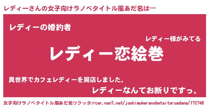 | 男性向けラノベタイトル風あだ名 | 『おまえをオタクにしてやるから、俺をレディーにしてくれ! 』 |