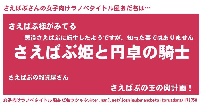 | 胡散臭い通販商品みたいなあだ名 | 『モテモテ間違いなし霊験あらたかなお札…その名も「さえばぶ」』 |