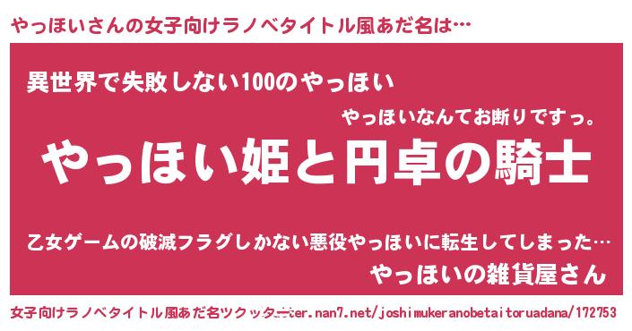 | 男性向けラノベタイトル風あだ名 | 『ヤッホイアートオンライン』 |