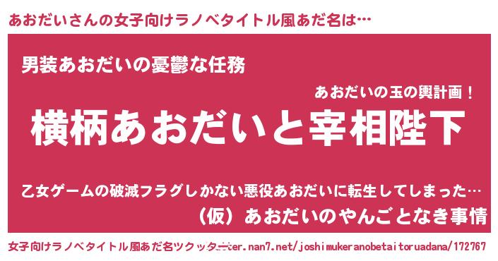 | 男性向けラノベタイトル風あだ名 | 『あおだいに滅ぼされるだけの簡単なお仕事です』 |