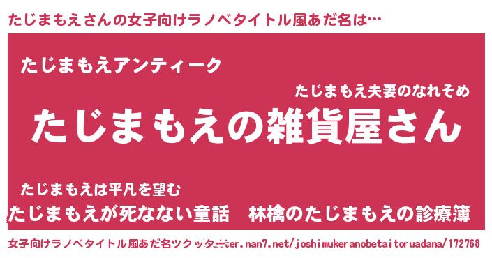 | 男性向けラノベタイトル風あだ名 | 『やはりたじまもえの青春ラブコメはまちがっている 』 |