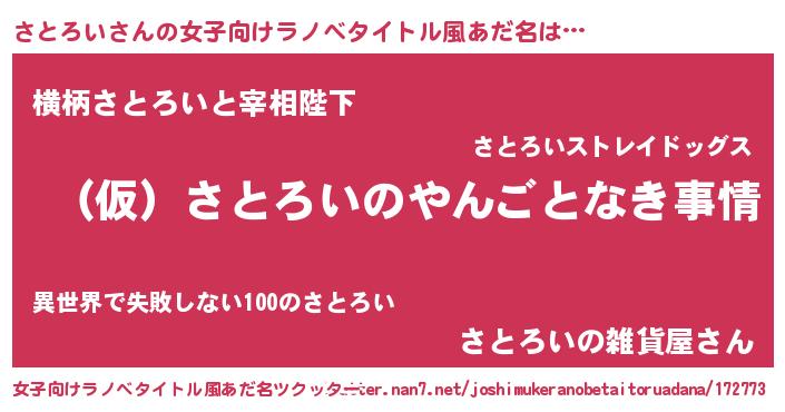| 意味不明あだ名 | 『ペロリンさとろい』『自称さとろい』 |