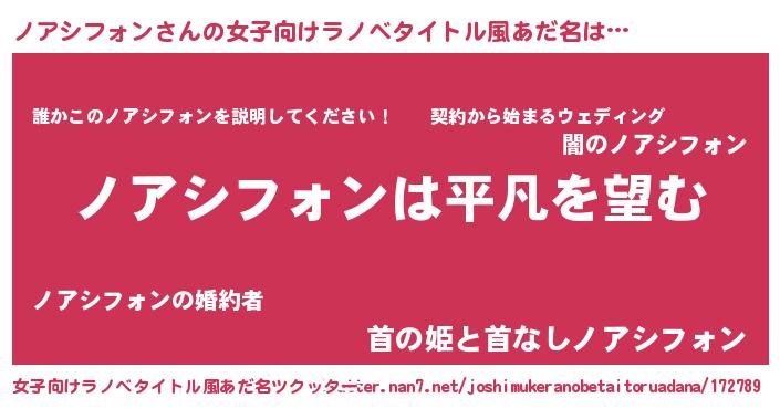 | ファンタジー風あだ名 | 『ファントムノアス』『ノアフェル』 |